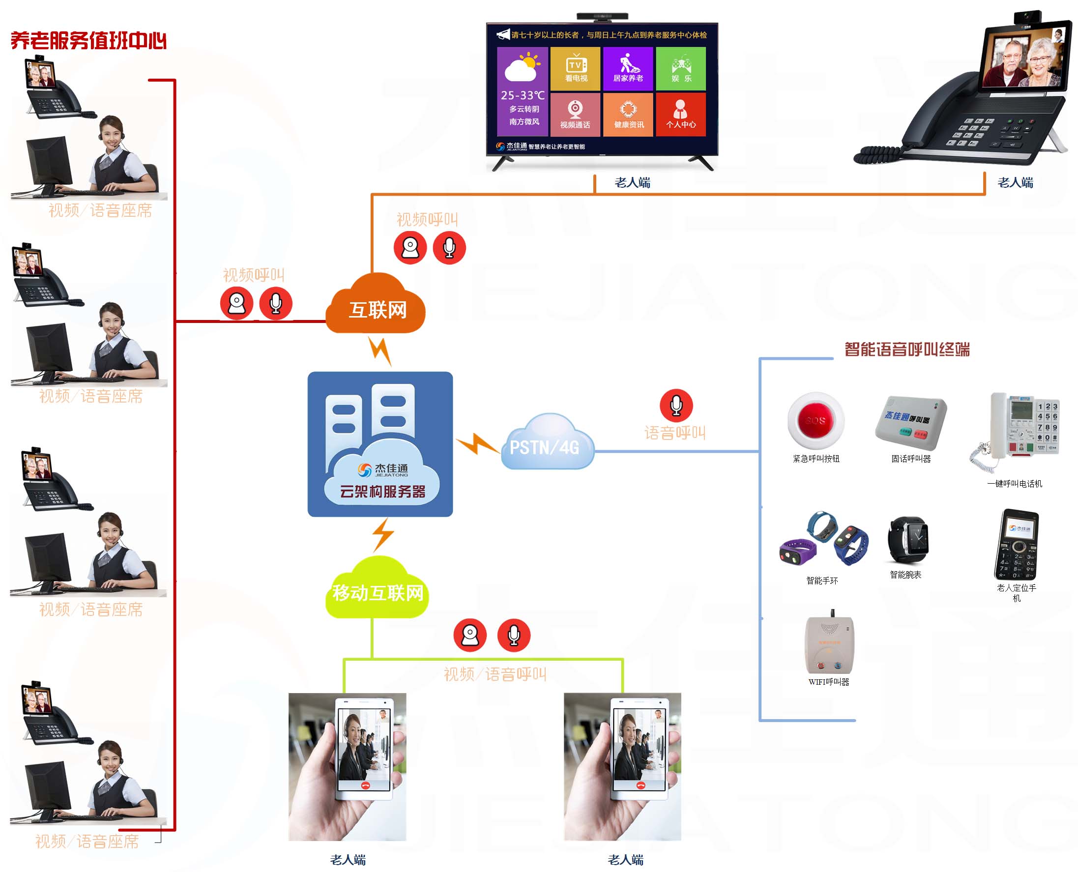 •         杰佳通自主研發的智慧養老平臺中把可視化功能完美應用于老人需求提交,看得見的養老服務--視頻應用在智慧養老平臺中得到充分體現,老人可以通過“智能手機”、“電視”、“平板電腦”進行可視化(視頻)呼叫服務中心或者服務商和子女。