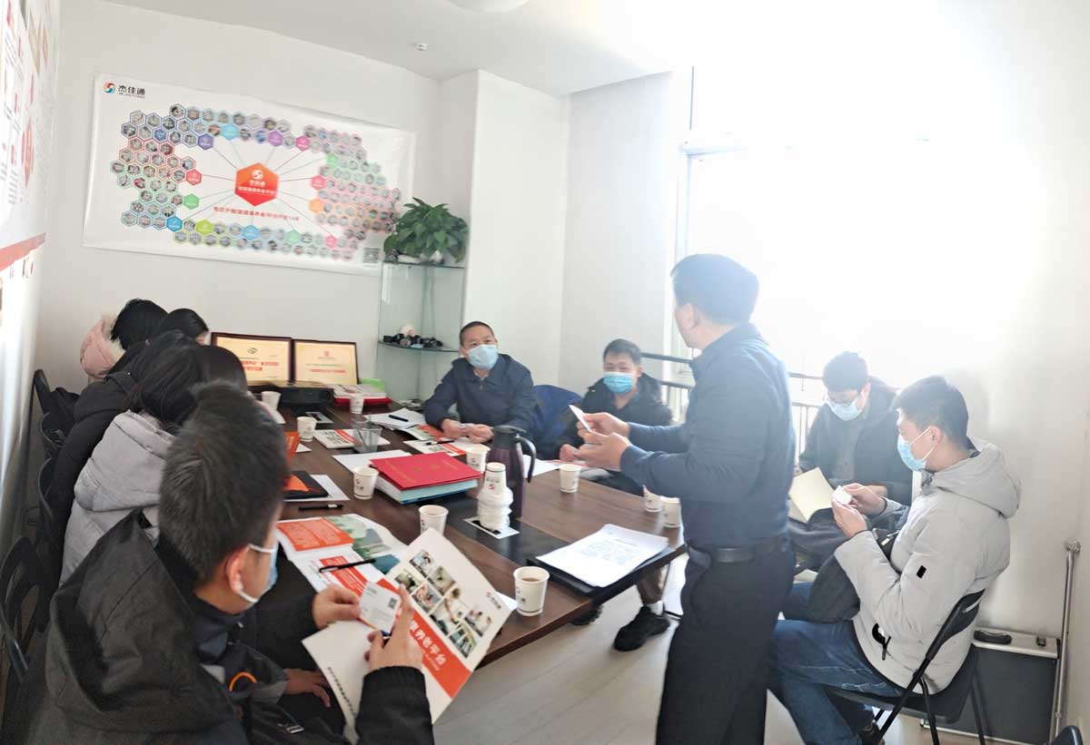 領(lǐng)導(dǎo)一行和公司創(chuàng)始人張總進(jìn)行了深入的交流,了解了杰佳通在智慧養(yǎng)老行業(yè)16年的發(fā)展歷程,并在會(huì)議室聽(tīng)取了張總在智慧養(yǎng)老平臺(tái)研發(fā)、智慧養(yǎng)老終端產(chǎn)品使用以及智慧養(yǎng)老行業(yè)發(fā)展趨勢(shì)等等方面的匯報(bào)。