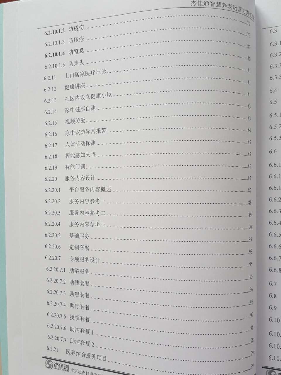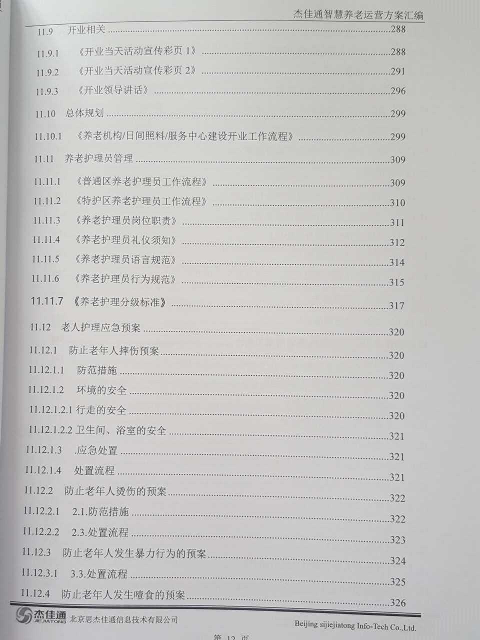 杰佳通專注智慧養(yǎng)老平臺(tái)14年,基于多年養(yǎng)老平臺(tái)開發(fā)經(jīng)驗(yàn),和幾百家客戶運(yùn)營(yíng)經(jīng)驗(yàn),編制了七百多頁(yè)的《智慧養(yǎng)老平臺(tái)運(yùn)營(yíng)匯編》(還在陸續(xù)完善中),供我們的客戶實(shí)操參考,幫助客戶少走彎路,快速盈利。
